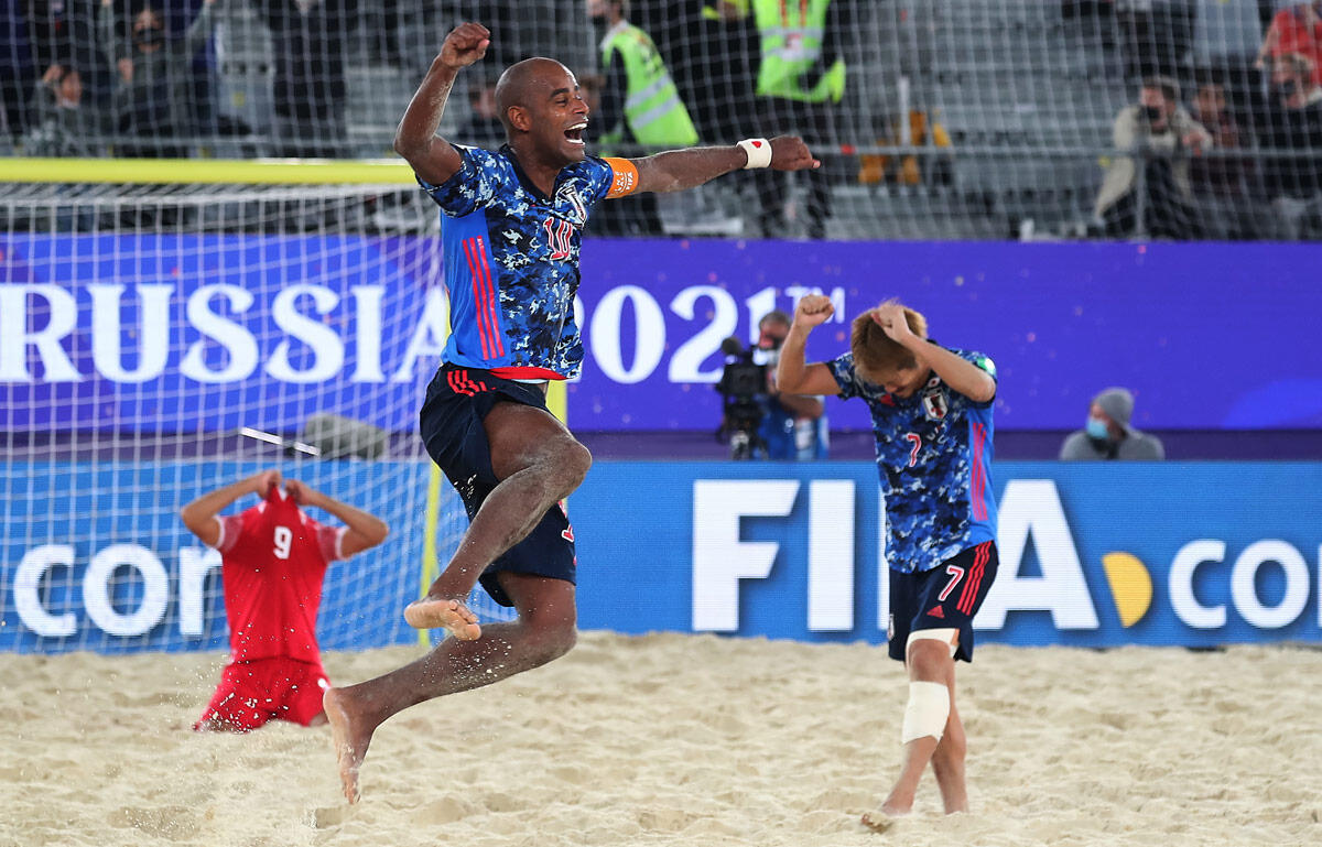 しかし日本も諦めてはいない。キックオフから攻め込むと、赤熊が執念のオーバーヘッド。これが右ポストを叩いてゴールに転がり込む。失点から11秒後の電光石火の早業だった。試合は残り11秒でタヒチがFKを獲得したが、決定的なシュートをGK河合雄介が2度にわたってセーブ。トータルスコア5-4で日本はタヒチを下してベスト4に進出した。