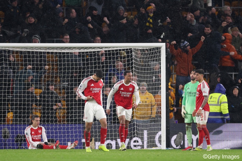 アーセナルが痛恨の2戦連続ドロー…90+4分に同点弾献上、2点差から最下位ウルブスに追い付かれる
