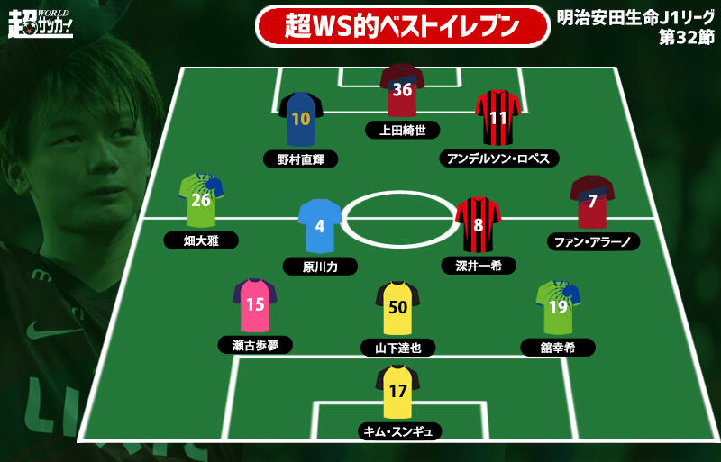 明治安田生命J1リーグ第32節の6試合が12日に開催された。超WS編集部が各試合から印象に残った選手を選りすぐり、ベストイレブンを紹介する。