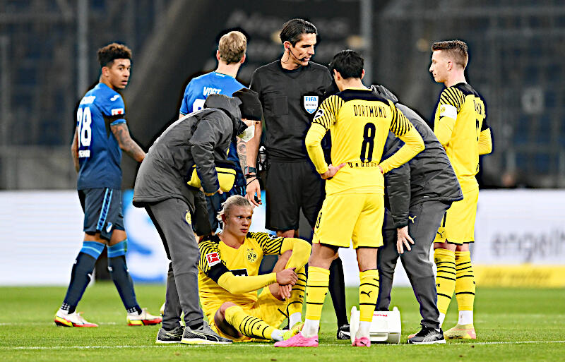 22日に行われたブンデスリーガ第20節のホッフェンハイム戦に先発出場したハーランドは、6分に先制点となるゴールをマークしたが、プレー中に左足の付け根付近を痛めると、63分にヴィツェルとの交代を余儀なくされた。
