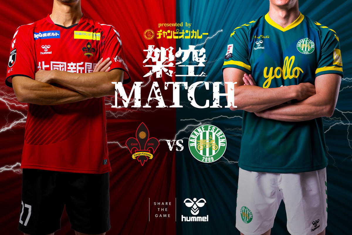ツエーゲン金沢は、Jリーグ中断期間の7月21日に葉羽エストレーノとのスペシャルマッチを行うことを発表した。金沢と葉羽は、共にヒュンメルがサポートするクラブ。チャンピオンカレーPRESENTSとしてこの試合が行われる。