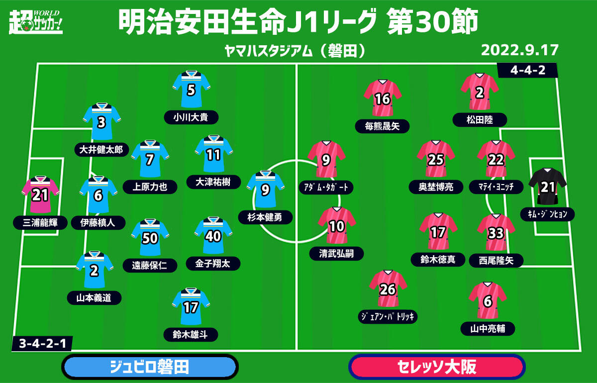 【J1注目プレビュー|第30節:磐田vsC大阪】最下位・磐田は正念場、C大阪は3位入りに負けられない戦い