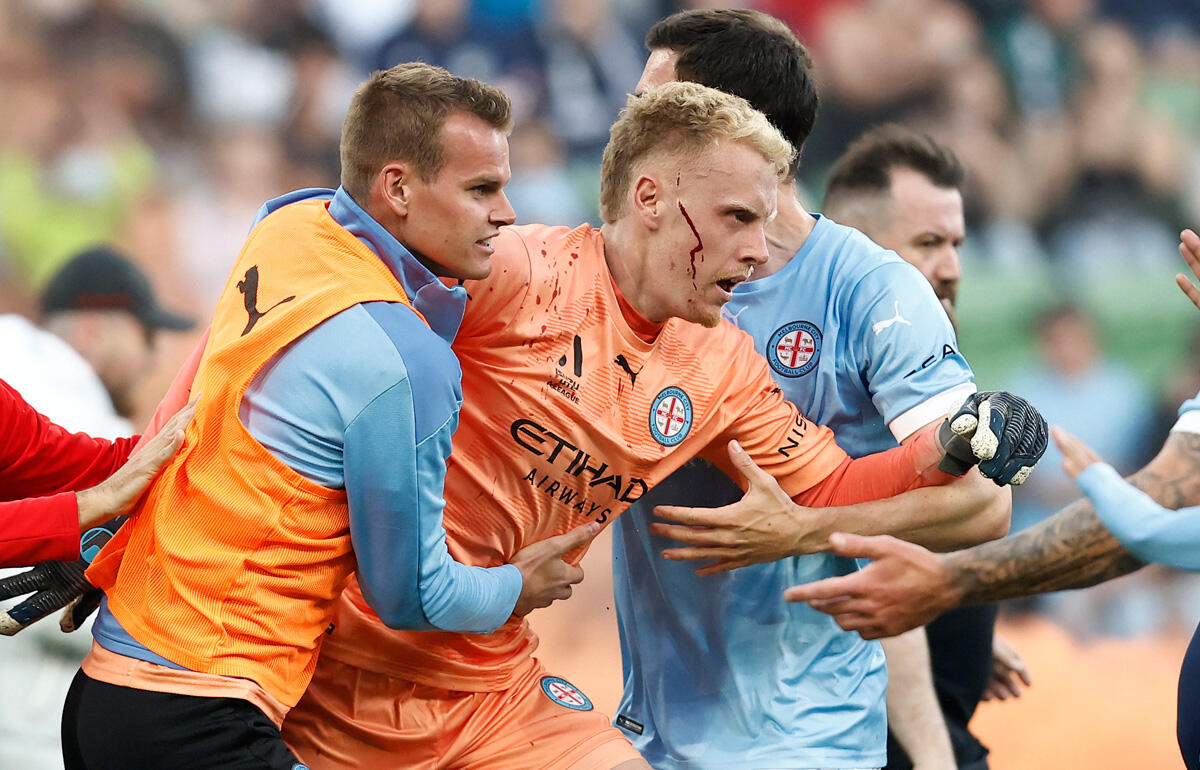 観客から金属バケツが投げ込まれ、選手が頭部負傷…Aリーグ メルボルン・ダービーで