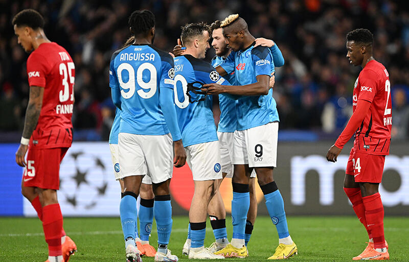 初のベスト8進出が目前となっているナポリは、主力に欠場者がいない中、オシムヘン、クワラツヘリア、ポリターノの3トップで臨んだ。