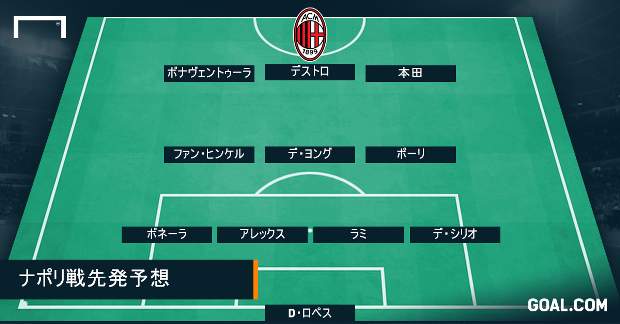 イタリア『スカイ・スポーツ』『ガゼッタ・デッロ・スポルト』『コッリエレ・デッロ・スポルト』といった主要メディアも、本田が4-3-3の右ウィングで先発出場すると予想した。