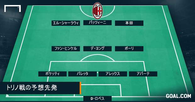 『ガゼッタ・デッロ・スポルト』、『コッリエレ・デッロ・スポルト』、『スカイ・スポーツ』といったイタリアの主要メディアも、本田が4-3-3の右ウィングで先発すると予想している。