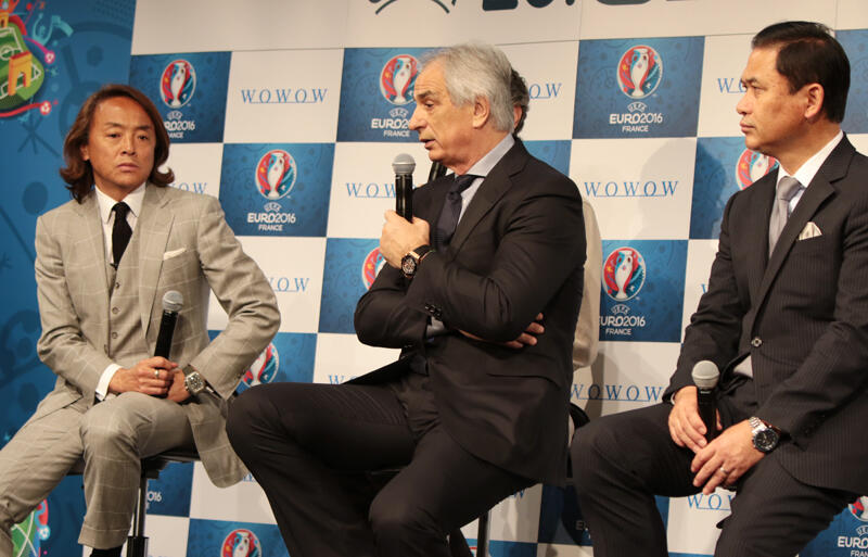 ▽28日に原宿のクエストホールで、今夏にフランスで開催される「UEFA EURO2016サッカー欧州選手権」を放映するWOWOWの製作発表記者会見が行われた。