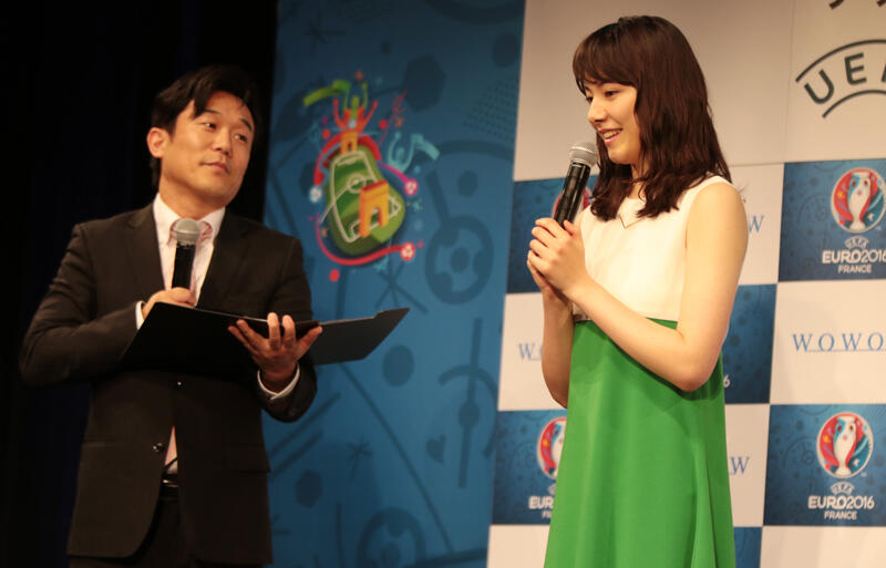 ▽28日に原宿のクエストホールで、今夏にフランスで開催される「UEFA EURO2016サッカー欧州選手権」を放映するWOWOWの製作発表記者会見が行われた。