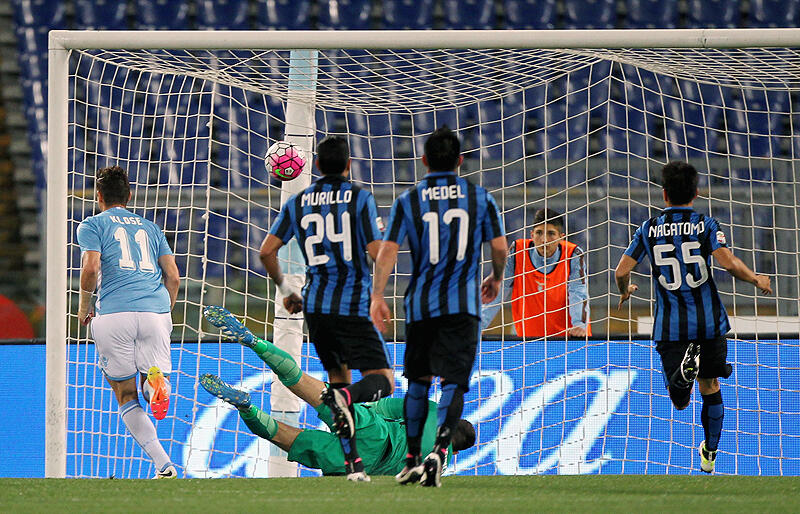 ▽S・インザーギ監督とマンチーニ監督、現役時代にラツィオで2トップを組んだこともある指揮官同士の一戦は、インテルが試合のペースを握って攻めに出たものの、ラツィオがあっさりと先制に成功する。8分、ルリッチとのワンツーでボックス中央に完全に抜け出したクローゼが、GKハンダノビッチを外すループシュートをゴールに流し込んだ。