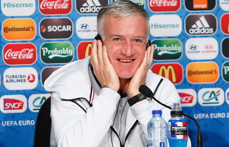 ▽ユーロ2016・グループA最終節のスイス代表戦を前に、フランス代表のディディエ・デシャン監督が会見に臨んだ。