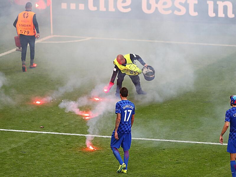 ユーロ2016グループD第2節のチェコ戦では、試合終盤にクロアチアサポーターがピッチ上に向けて発煙筒や爆竹などを投げ入れる騒動が発生。試合は一時中断されることになり、UEFAはクロアチアへの処分に向けた調査を行っている。