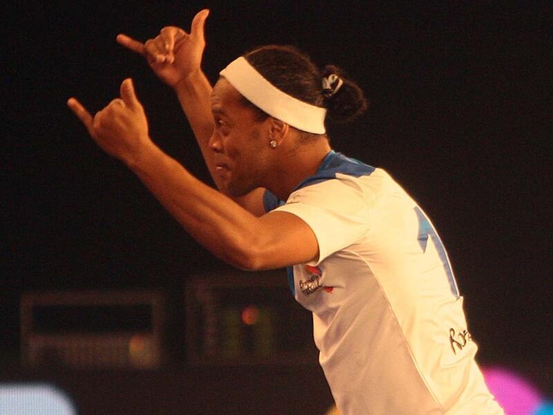元ブラジル代表FWロナウジーニョが、インドでのフットサルで5ゴールを挙げ、7-2の勝利に貢献した。
