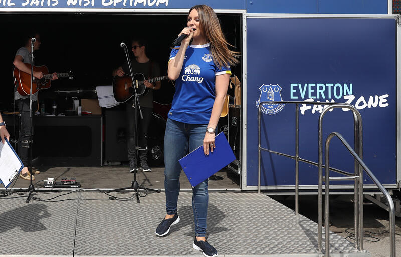 ▽男性サッカーファンには朗報かもしれない。エバートンの『ファン・ゾーン』のプレゼンターを務めるジェニファー・ジュエルさんが思わぬ約束を宣言した。