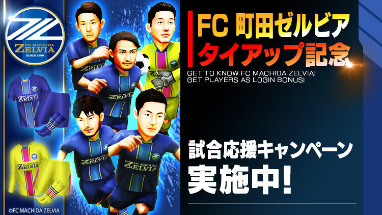 ▽今回のタイアップでは、FC町田ゼルビアの5選手やユニフォームやエンブレムなどがログインボーナスでもらえるキャンペーンを実施。是非、『BFBチャンピオンズ』をプレーしてみよう!