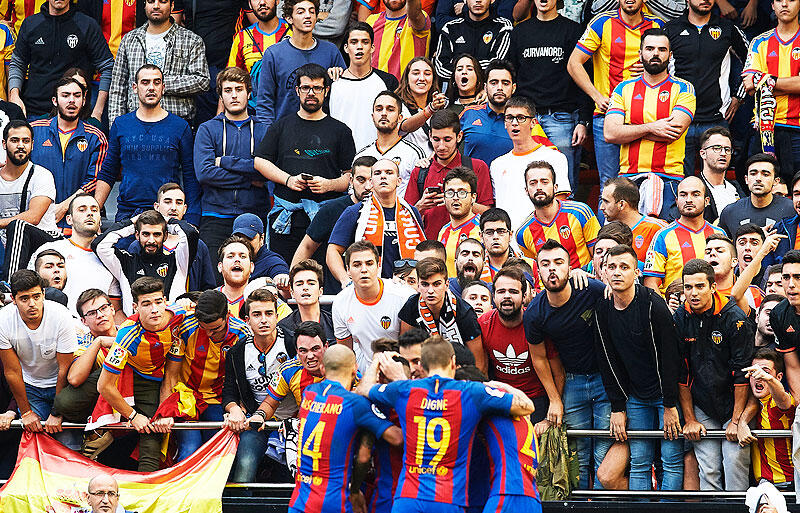 ▽事件が起こったのは決勝ゴールの直後。バルセロナの選手たちがメッシのゴールを祝っているところ、バレンシアのサポーター席からペットボトルが投げつけられ、ブラジル代表FWネイマールに直撃。これに激怒したメッシらがバレンシアファンに暴言を吐き捨てるなど一側触発の事態となった。