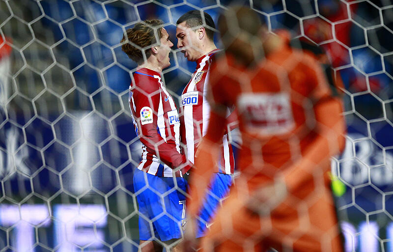 ▽それでも、直後の28分に相手陣内中央でFKを得たアトレティコは、相手のミスから先制に成功する。コケの浮き球のボールに対して、相手GKジョエル・ロドリゲスが目測を誤り、パンチングミスを犯すと、ホセ・ヒメネスが頭で合わせたボールをゴール前のグリーズマンがうまく頭でコースを変えて無人のゴールへ流し込んだ。