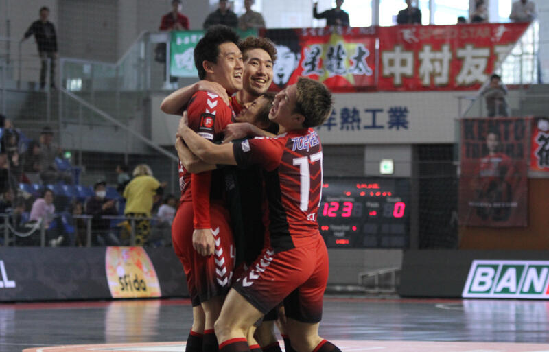 ▽名古屋セントラル2日目第1試合では、9位の北海道(勝ち点30)と7位の神戸(勝ち点39)が対戦した。試合は4分にFP十川祐樹のゴールで北海道が先制する。逆転でのプレーオフ出場のために負けられない神戸は、32分にFP稲田瑞穂のゴールで同点とすると、33分にはFP岡崎チアゴが逆転ゴールを奪取。北海道の反撃を許さず、神戸が逆転勝利を飾った。