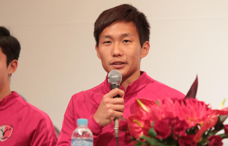 「湘南ベルマーレから加入することになりました三竿雄斗です。まず、このような素晴らしいクラブに入団することができて光栄だし、感謝している。チームの目標であるタイトル獲得に120%の力を出して貢献したい。よろしくお願いします」
