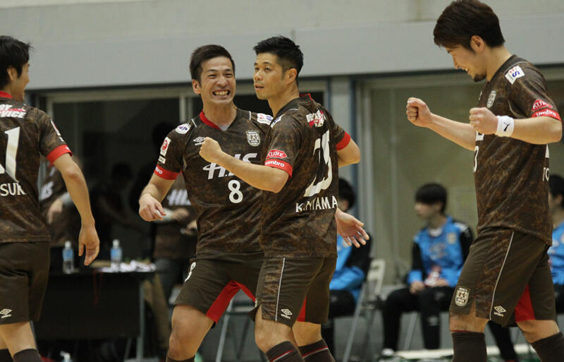 ▽プレーオフ出場を目指す府中と、リーグ1位にわずかな可能性を残す名古屋の一戦は、5分にFPダニエル・サカイ、7分に星龍太のゴールで名古屋が先行する。対する府中は前半のうちに1点を返すと、23分にFP渡邉知晃が同点ゴールを奪取。その後名古屋に再び勝ち越されるが、31分にFP柴田祐輔、35分に完山徹一がネットを揺らして逆転に成功。名古屋は直後からパワープレーに出るが、試合はそのまま終了。この結果、名古屋がFリーグ史上初めてとなるリーグ1位の座を逃した。