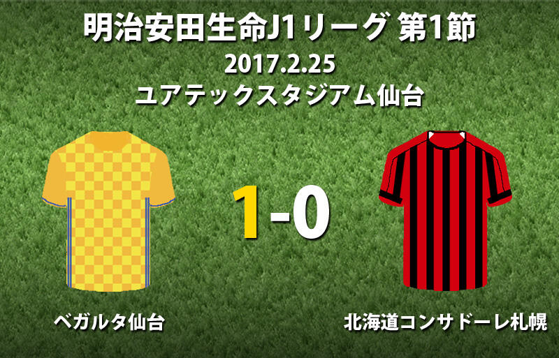 ▽25日にユアテックスタジアム仙台で行われた明治安田生命J1リーグ開幕節のベガルタ仙台vs北海道コンサドーレ札幌は、ホームの仙台が1-0で勝利した。