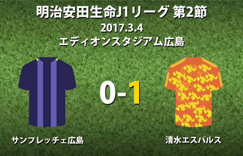 ▽4日にエディオンスタジアム広島で行われた明治安田生命J1リーグ第2節のサンフレッチェ広島vs清水エスパルスは、アウェイの清水が1-0で勝利した。