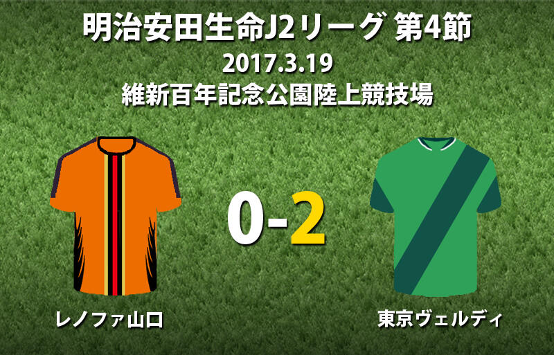 ▽19日に維新百年記念公園陸上競技場で行われた明治安田生命J2リーグ第4節のレノファ山口FCvs東京ヴェルディは、アウェイの東京Vが2-0で勝利した。