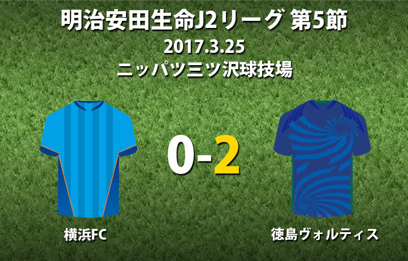 ▽明治安田生命J2リーグ第5節の横浜FCvs徳島ヴォルティスが25日にニッパツ三ツ沢球技場で行われ、2-0で徳島が勝利した。