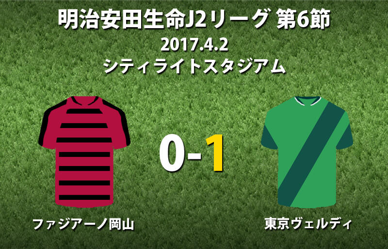 ▽明治安田生命J2リーグ第6節のファジアーノ岡山vs東京ヴェルディが2日にシティライトスタジアムで行われ、アウェイの東京Vが1-0で勝利した。