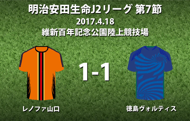 ▽明治安田生命J2リーグ第7節のレノファ山口FCvs徳島ヴォルティスが8日に維新百年記念公園陸上競技場で行われ、1-1のドローに終わった。