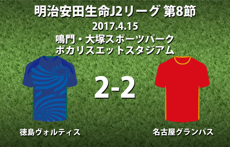▽15日、明治安田生命J2リーグ第8節の徳島ヴォルティスvs名古屋グランパスが鳴門・大塚スポーツパーク ポカリスエットスタジアムで行われ、2-2のドローに終わった。