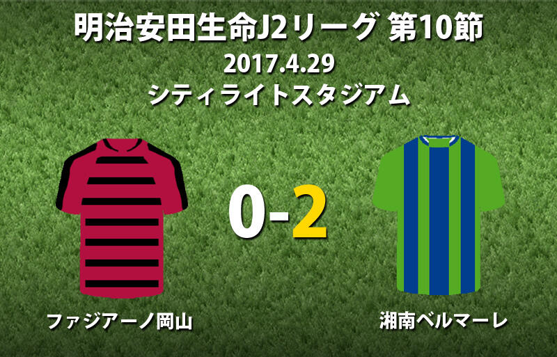 ▽29日に、明治安田生命J2リーグ第10節ファジアーノ岡山vs湘南ベルマーレが行われ、0-2でアウェイの湘南が勝利した。