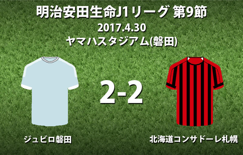 ▽明治安田生命J1リーグ第9節、ジュビロ磐田vsコンサドーレ札幌が30日に行われ、2-2で引き分けた。
