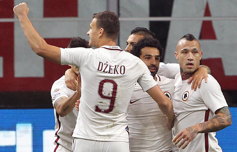 ▽ゼコの今季26ゴール目で幸先良く先制したローマは、前がかるミランに対してサラーを軸に縦に早い攻撃を展開。17分にはペロッティのミドルシュートがGKドンナルンマにわずかに触られ、右ポストを直撃した。