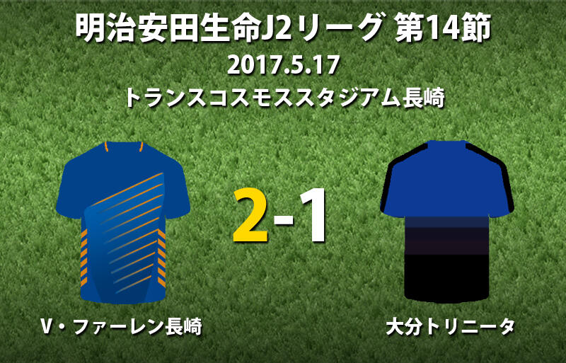 ▽明治安田生命J2リーグ第14節のV・ファーレン長崎vs大分トリニータが17日にトランスコスモススタジアム長崎で行われ、2-1で長崎が勝利した。