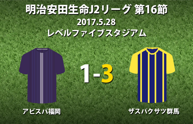▽28日に明治安田生命J2リーグ第16節のアビスパ福岡vsザスパクサツ群馬がレベルファイブスタジアムで行われ、3-1で群馬が勝利した。