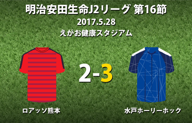 ▽28日に明治安田生命J2リーグ第16節のロアッソ熊本vs水戸ホーリーホックがえがお健康スタジアムで行われ、3-2で水戸が勝利した。