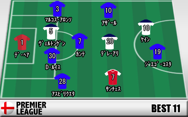 ▽最終優秀選手はアザールとした。PFAとFWA年間最優秀選手賞はカンテに譲ったものの、アザールも負けず劣らずのパフォーマンスを披露。優勝した一昨シーズンから昨シーズンに調子を落としたが、今シーズンは16ゴール5アシストと記録も残し、見事に復活した。コンテが託した2シャドーのセカンドストライカーとしての役割をまっとうし、優勝に大きく貢献した。★最優秀監督
