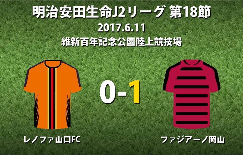 ▽11日に維新百年記念公園陸上競技場で行われた明治安田生命J2リーグ第18節のレノファ山口FCvsファジアーノ岡山は、アウェイの岡山が1-0で勝利した。