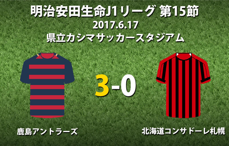 ▽明治安田生命J1リーグ第15節の鹿島アントラーズvsコンサドーレ札幌が17日に県立カシマサッカースタジアムで行われ、3-0で鹿島が勝利した。