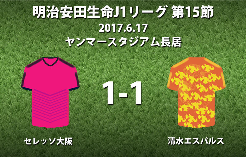 ▽明治安田生命J1リーグ第15節のセレッソ大阪vs清水エスパルスが17日にヤンマースタジアム長居で行われ、1-1の引き分けに終わった。