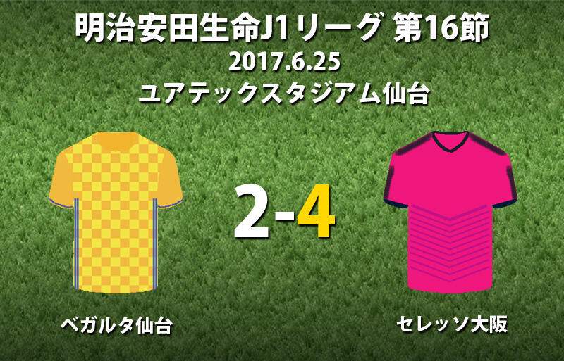 ▽明治安田生命J1リーグ第16節、ベガルタ仙台vsセレッソ大阪が25日に行われ、4-2でC大阪が勝利を収めた。