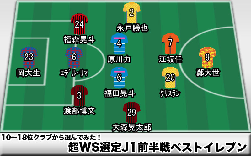 ▽明治安田生命J1リーグ第17節が終わり、早くもシーズン折り返しに。超WS編集部が前半戦(第1節〜17節)までを査定対象に、特別編として10〜18位クラブから印象に残った選手でベストイレブンを選んでみた。