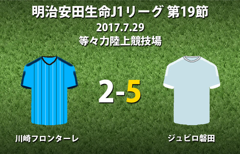 ▽明治安田生命J1リーグ第19節、川崎フロンターレvsジュビロ磐田が29日、等々力陸上競技場で行われ、5-2で磐田が勝利した。