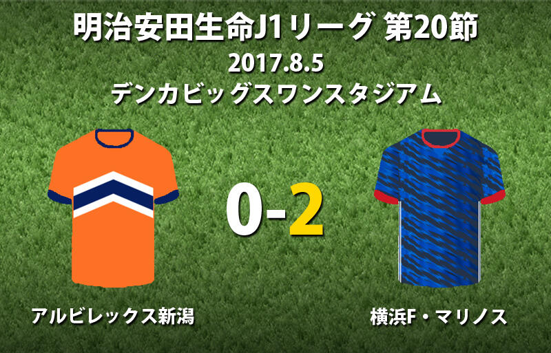 ▽明治安田生命J1リーグ第20節のアルビレックス新潟vs横浜F・マリノスが5日にデンカビッグスワンスタジアムで行われ、0-2で横浜FMが勝利した。