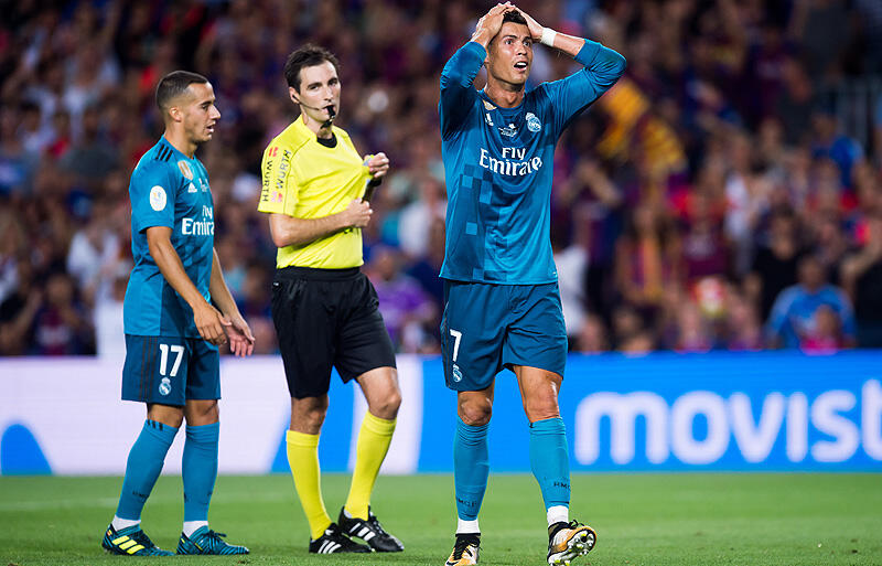 ▽13日に行われたスーペル・コパ1stレグのバルセロナ戦で、レアル・マドリーは3-1と完勝した。この一戦に途中出場したC・ロナウドは1得点の活躍を見せたが、その後にユニフォームを脱いだゴールセレブレーションで1枚目のイエローカードを提示された。さらに、82分には相手選手ともつれあうようにしてボックス内で転倒。しかし主審はC・ロナウドのシミュレーションと判断して2枚目のイエローカードを提示した。同選手はこの判定に対する抗議の一環の中で主審を手で押したとして、5試合の出場停止処分を科されることとなった。