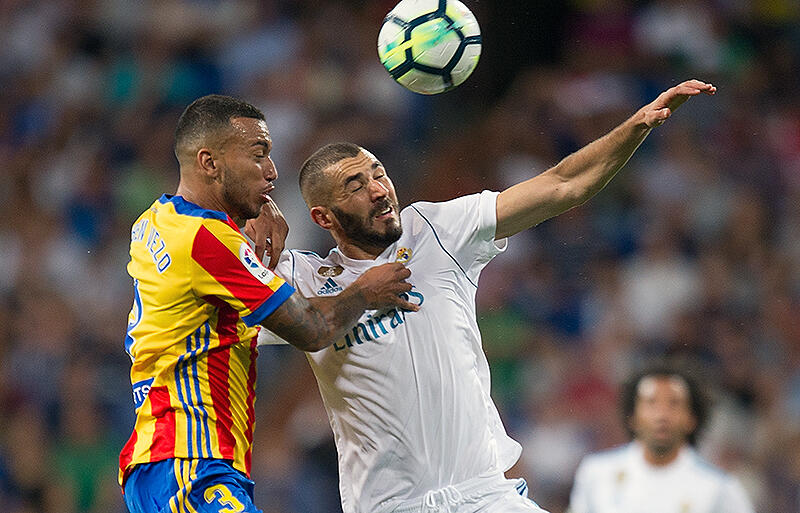 ▽1-1のタイに戻った試合はここからボールを保持して押し込むマドリーと、堅守速攻で応戦するバレンシアという構図の下、白熱の攻防が続く。この流れの中、ホームのマドリーがベイルやマルセロを起点に再三の決定機を創出する。36分には自陣深くからのロングカウンターでマルセロの縦パスに抜け出したベンゼマに絶好機も、巧みなコース取りのドリブルから放ったシュートはGKネトの好守に遭う。前半終了間際にはベイルとクロースのお膳立てから再びベンゼマに決定機も、いずれも決め切れず。前半は1-1のイーブンで終了した。
