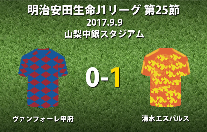 ▽9日に山梨中銀スタジアムで行われた明治安田生命J1リーグ第25節のヴァンフォーレ甲府vs清水エスパルスは、アウェイの清水が1-0で勝利した。