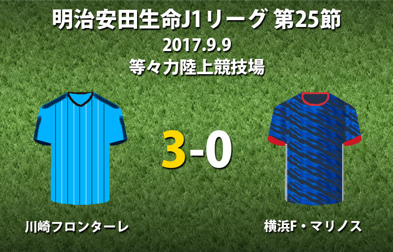 ▽9日に等々力陸上競技場で行われた明治安田生命J1リーグ第25節の川崎フロンターレvs横浜F・マリノスは、ホームの川崎Fが3-0で勝利した。