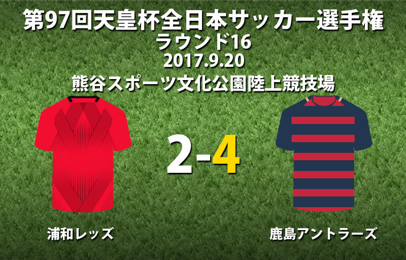 ▽第97回天皇杯全日本サッカー選手権大会ラウンド16(4回戦)の浦和レッズ(J1) vs 鹿島アントラーズ(J1)が、20日に熊谷スポーツ文化公園陸上競技場で行われ、2-4で鹿島が勝利した。