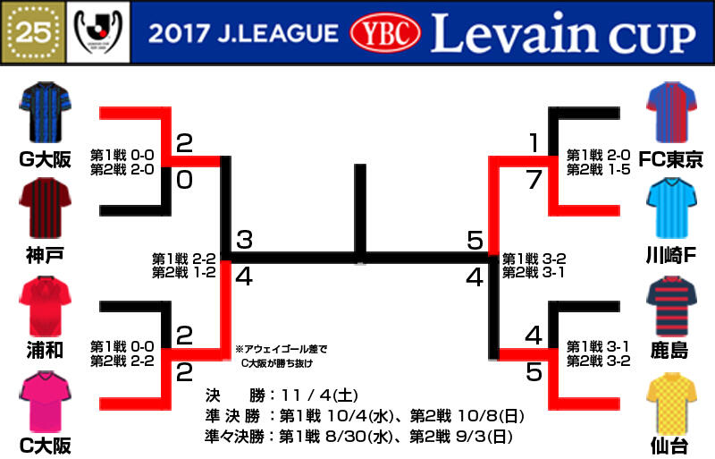 ▽2017Jリーグ YBCルヴァンカップ決勝進出の2チームが決定した。